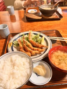 母上は、おなかの調子が良くないので、温かいうどん、俺はエビフライ定食にしました。