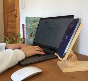 木のぬくもりのスタンドに載せてスマホの画面を見ることで緊張がほぐれて、肩凝りもやわらぐのではないでしょうか。