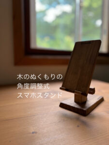 スマホは、木製のスマホスタンドに載せて休んでもらいましょう。